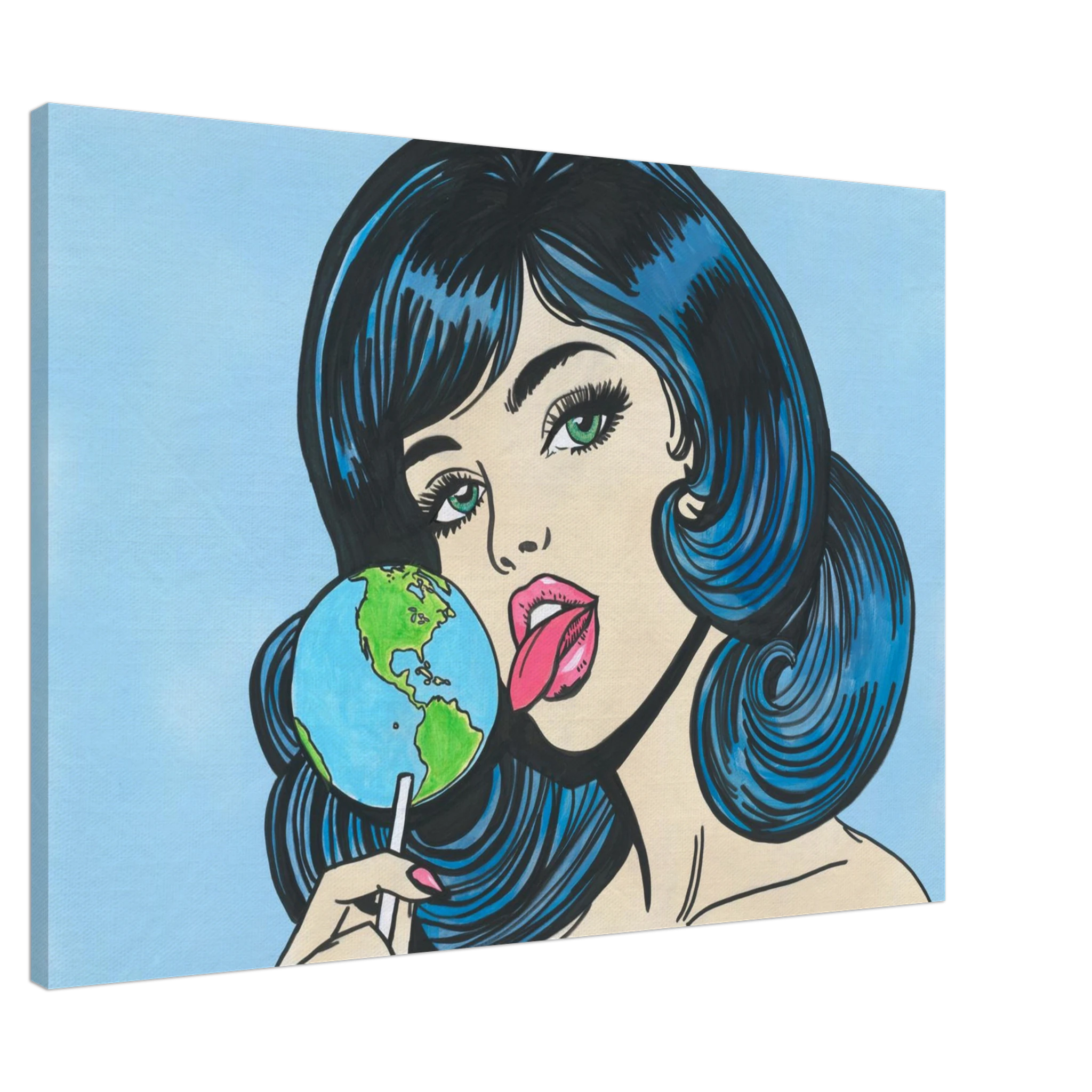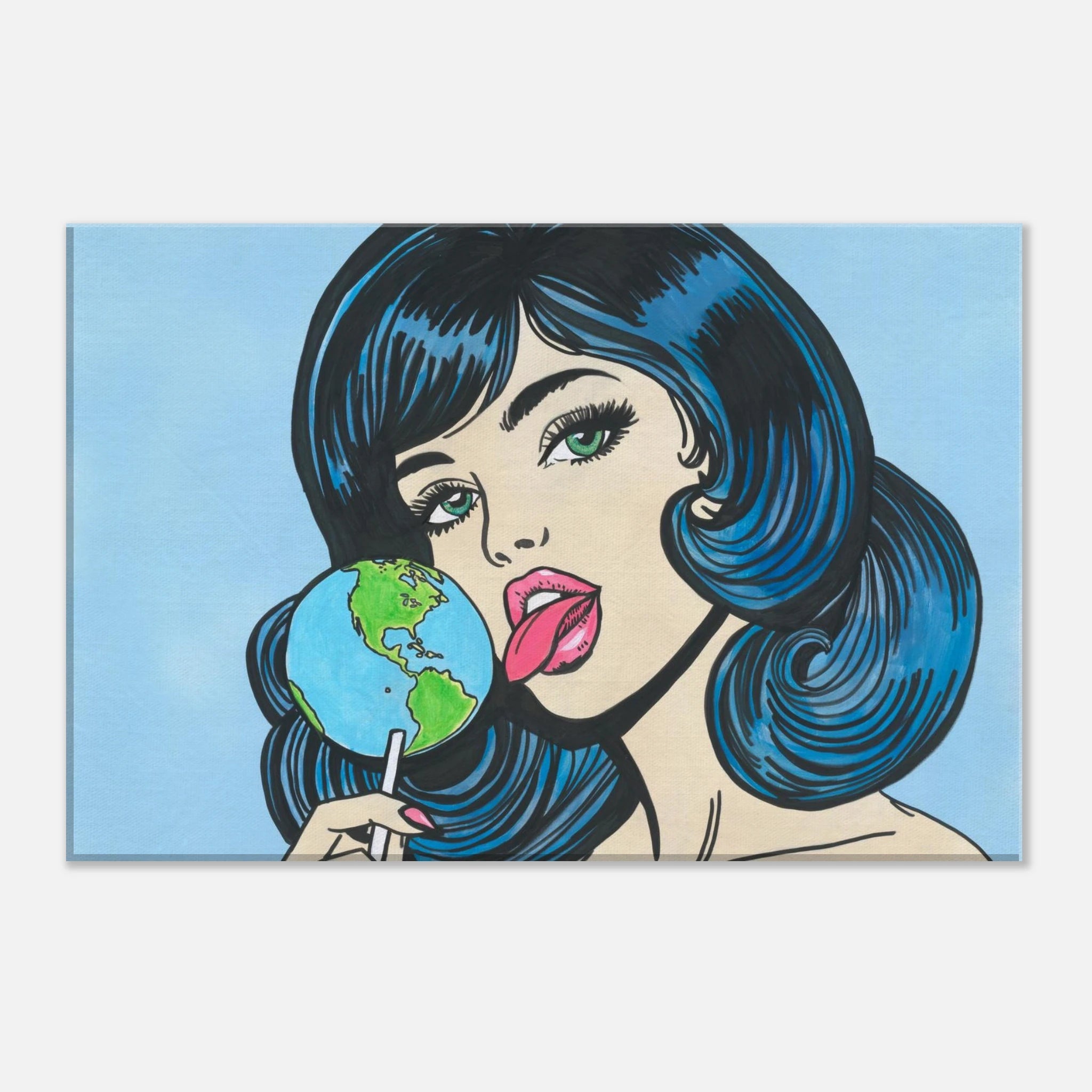 Printed on slim canvas, the artwork takes on a textured, painterly feel that enhances its vintage comic aesthetic. The matte finish adds depth and timelessness, transforming Earth Girl into a tactile piece of wall art that feels as authentic as it looks.