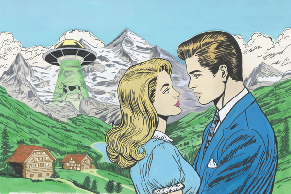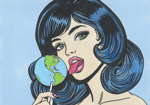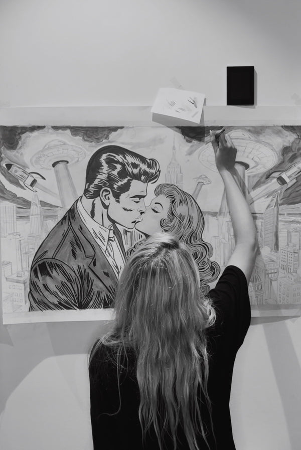 I’m fascinated by the intersection of the ordinary and the extraordinary. I love to play with retro comic styles but with a cosmic, often cheeky edge. My pieces are sometimes romantic, sometimes sarcastic, and always rooted in curiosity.